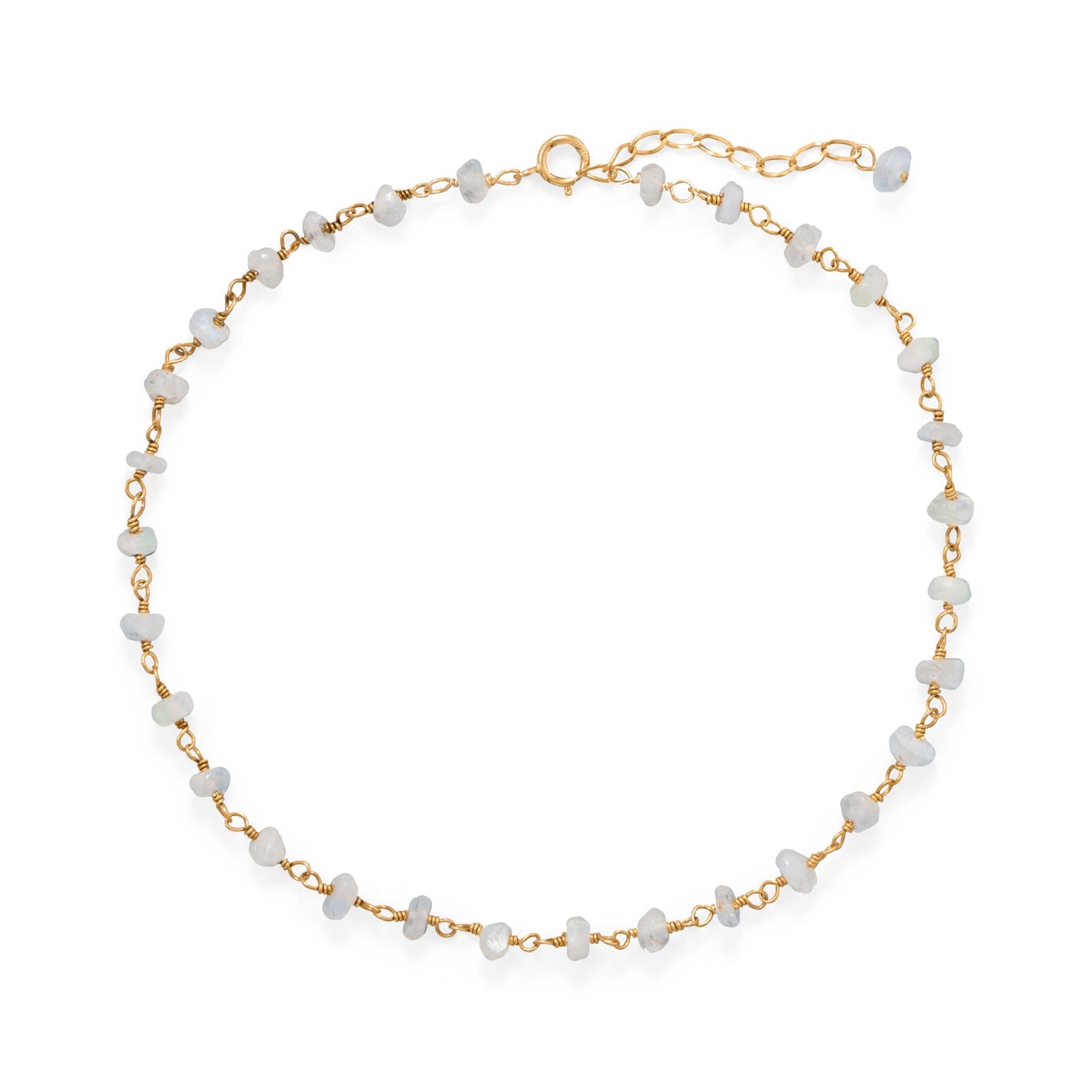 Moonlight Glow! 14 Karat Gold Plated Rainbow Moonstone Anklet
