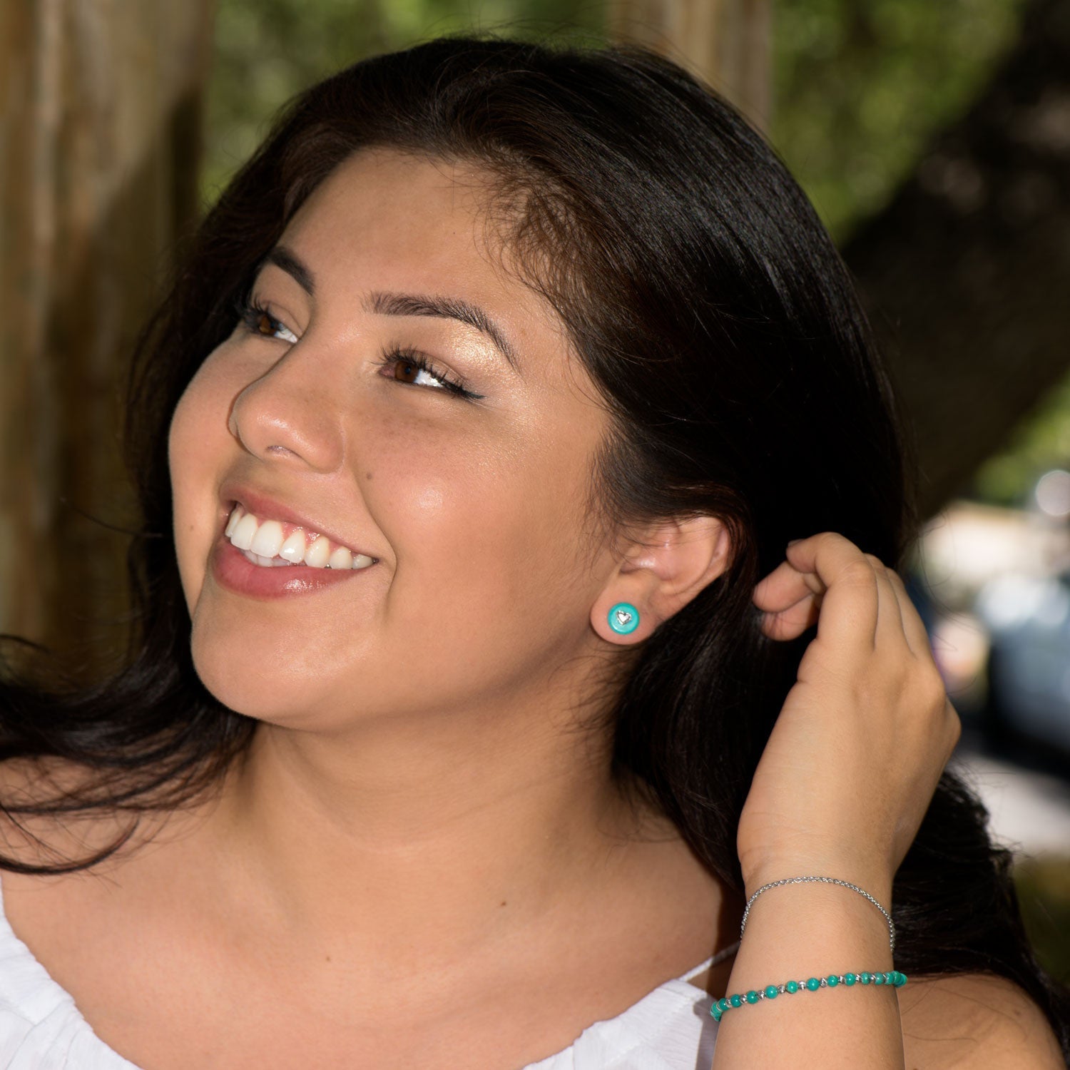 Rhodium plated sterling silver double strand bolo bracelet. This bracelet has one strand of cable chain and one strand of alternating 4.4mm round reconstituted turquoise and diamond cut beads, and has two 5.1mm decorative ends beads on either side with a 1.5mm purple CZ in the center. The bracelet adjusts to approximately 11" with a 6.5mm circle slider bead and has a 2.1mm ball on each of the two cable chain ends. .925 Sterling Silver