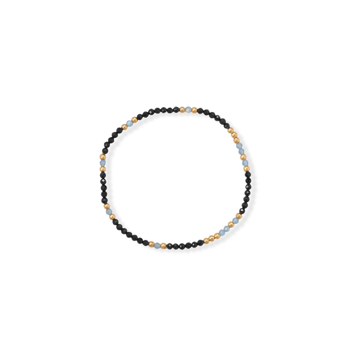 We couldn't pick one, so we made a set of three! This adorable stretch bracelet set features 2.4mm labradorite beads, 2.4mm black spinel beads, 2.3mm 14 karat gold sterling silver beads and a 14 karat gold plated sterling silver 7.8mm charm with a CZ star design. CZ is 2.5mm. Bracelets are 6.5". .925 Sterling Silver