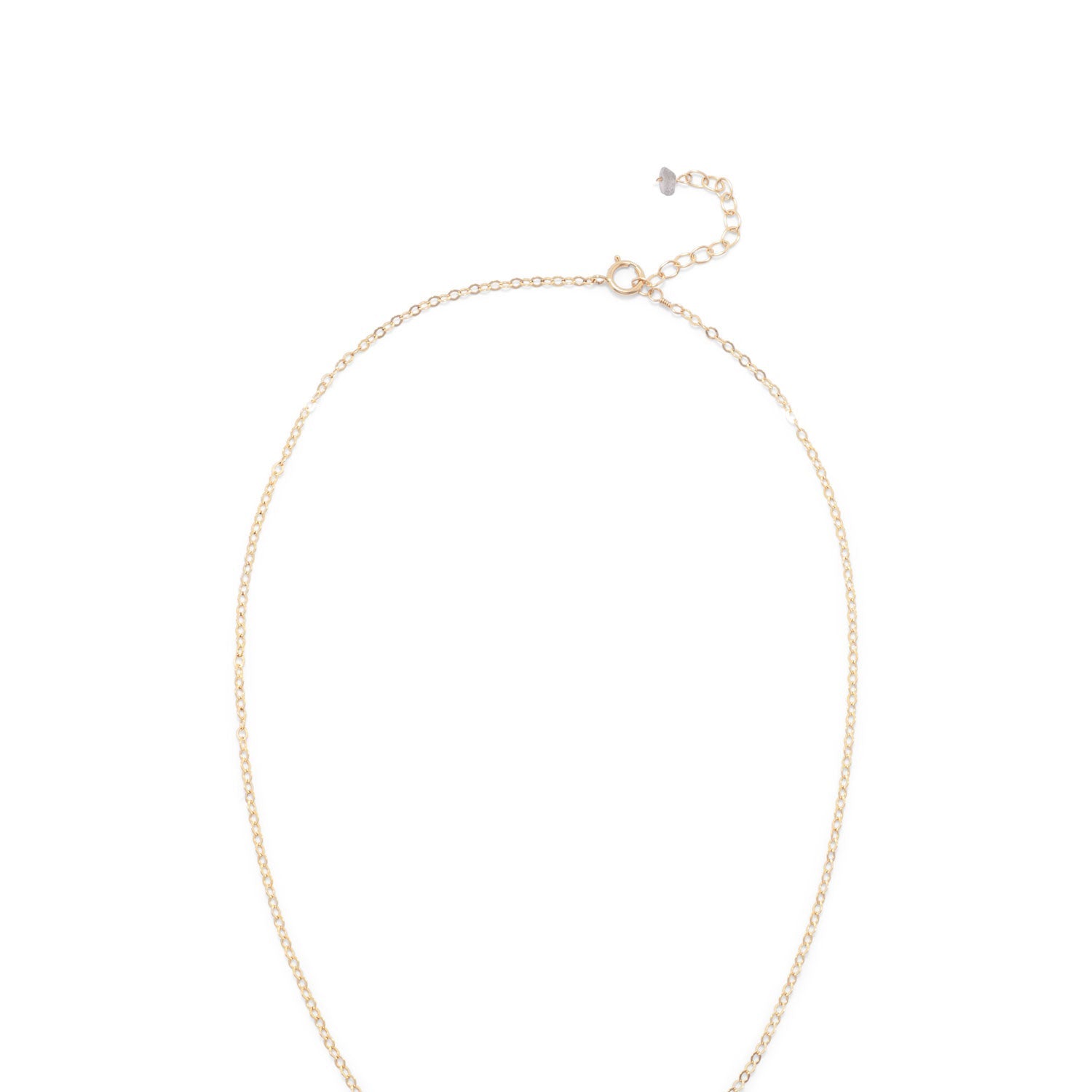 15.5" + 1" extension 14/20 gold filled flat cable chain necklace. This necklace features a 1" x .5" ellipse shaped faceted Labradorite slide (not fixed to the chain) surrounded by 1mm CZs. The necklace has a spring ring closure and a 4.5mm faceted Labradorite bead detail at the end of the extension chain.