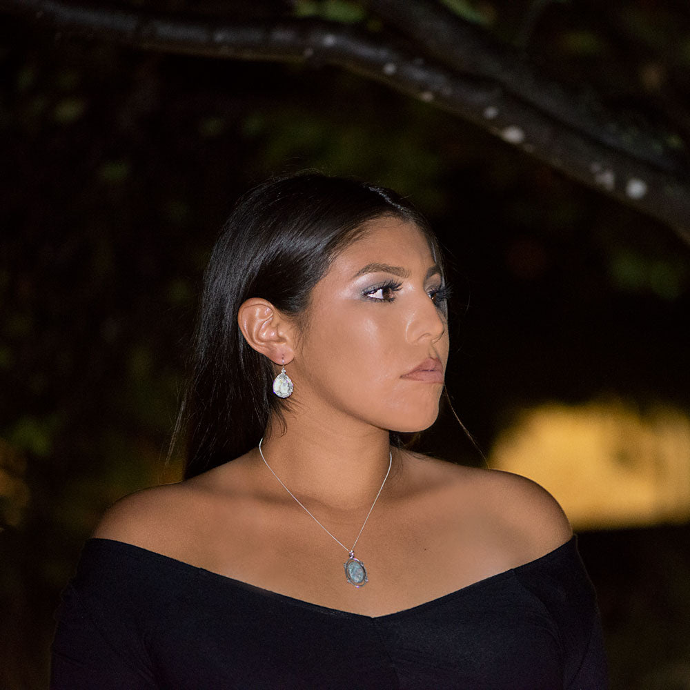 Oxidized Filigree Design Pear Ancient Roman Glass French Wire Earrings